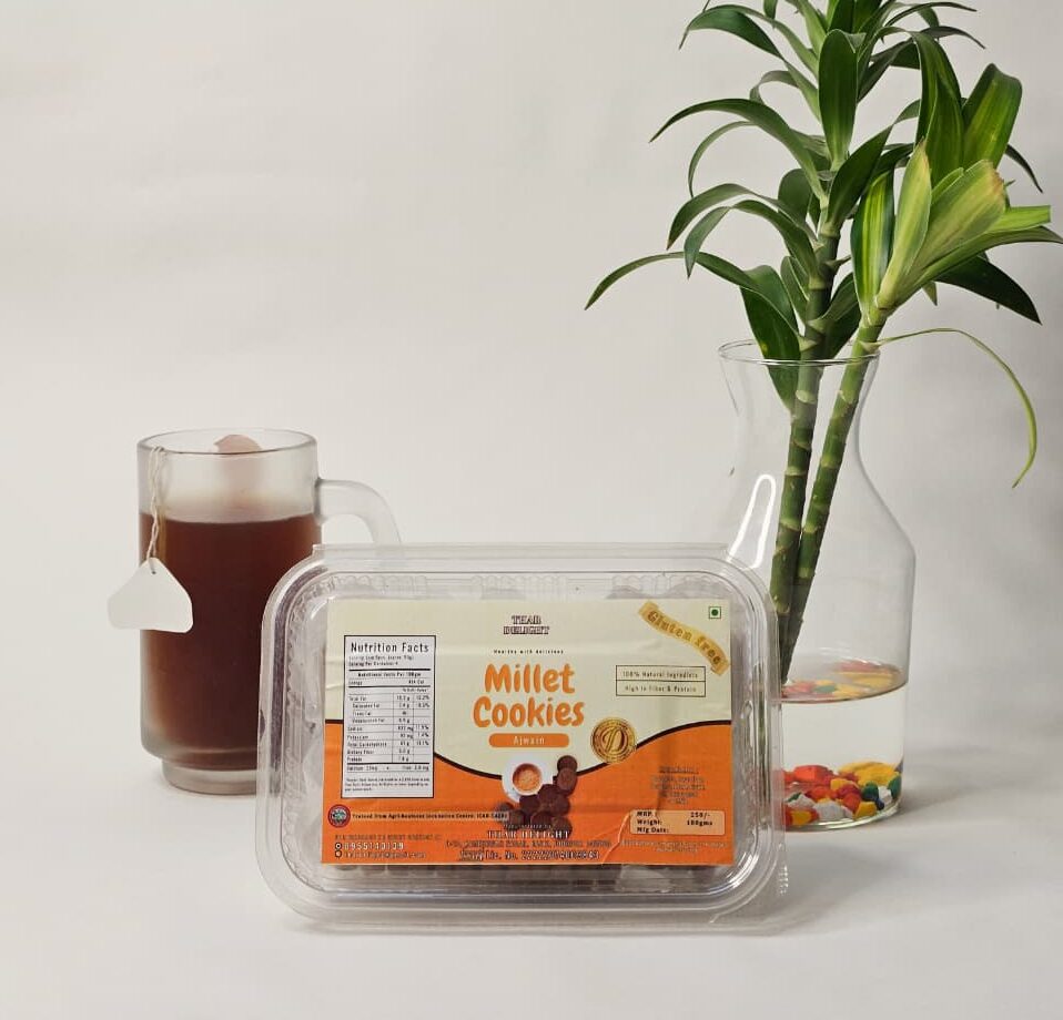 Buy Ajwain Millet Cookies online – gluten-free millet cookies flavored with aromatic ajwain and made with desi ghee. Light, savory, and easy to digest for everyday snacking.