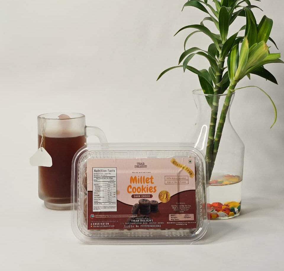Buy Dark Chocolate Millet Cookies online – gluten-free millet cookies made with rich dark chocolate and wholesome grains. Healthy, indulgent, and perfect for guilt-free snacking.